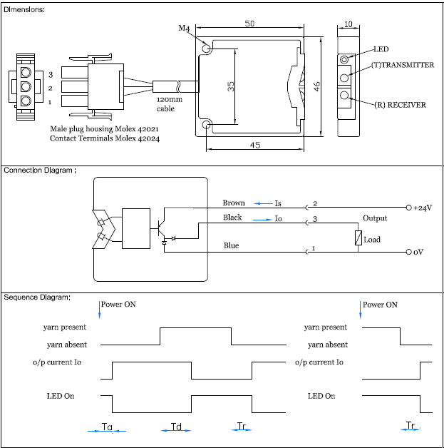 OYM01 is used particularly on spinning machines for monitoring all standard yarns used especially where non-contact yarn detection is desired and additional force cannot be exerted on the yarn. The detectors are completely potted with epoxy resin making them vibration proof and resistant to both normal and anti-static spin finish.