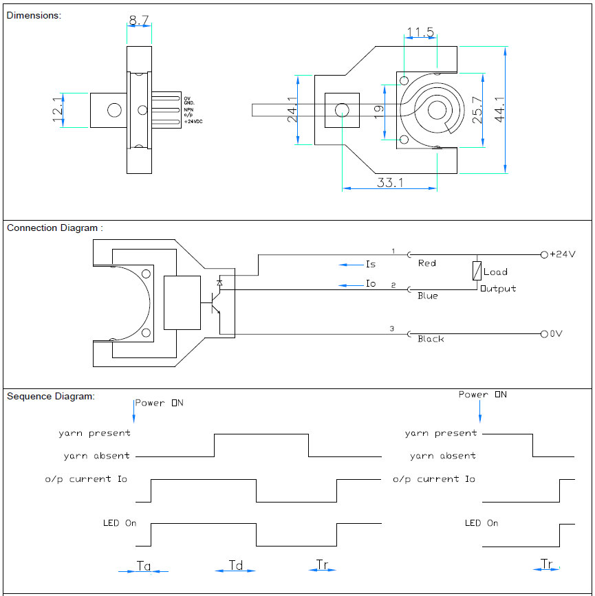 Designed for easy application on wide renge of processes providing detection of balloning yarns.Typical applications include twisting machines(TFO). Suitable for all standard yarns in any colour including black.