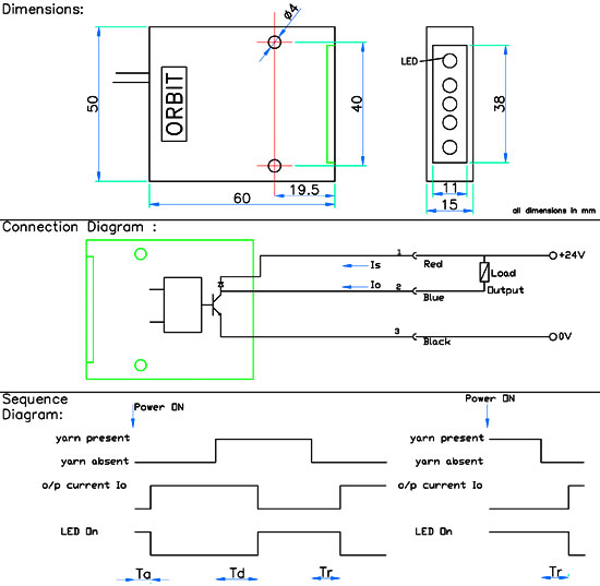 OYM range is used particularly on spinning machines for monitoring all standard yarns used especially where non-contact yarn detection is desired and additional force cannot be exerted on the yarn. The detectors are completely potted with epoxy resin making them vibration proof and resistant to both normal and anti-static spin finish.