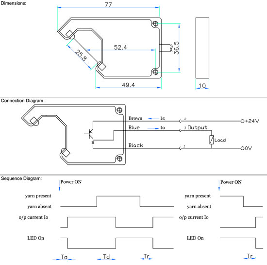 OYM range is used particularly on spinning machines for monitoring all standard yarns used especially where non-contact yarn detection is desired and additional force cannot be exerted on the yarn. The detectors are completely potted with epoxy resin making them vibration proof and resistant to both normal and anti-static spin finish.