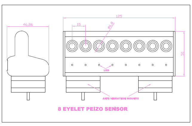 Weft Sensor is used for weft detection on Rapier Looms. During the weft insertion the yarn is drawn from the thread guide of the sensor. This yarn movement is converted into electrical signal by piezo element inside the sensor. This electrical signal is amplified and evaluated along with flag position to detect broken weft and stop the machine. The weft sensor is available in 8 selector model with "ANTI II" feature to prevent insertion of more than one yarn.